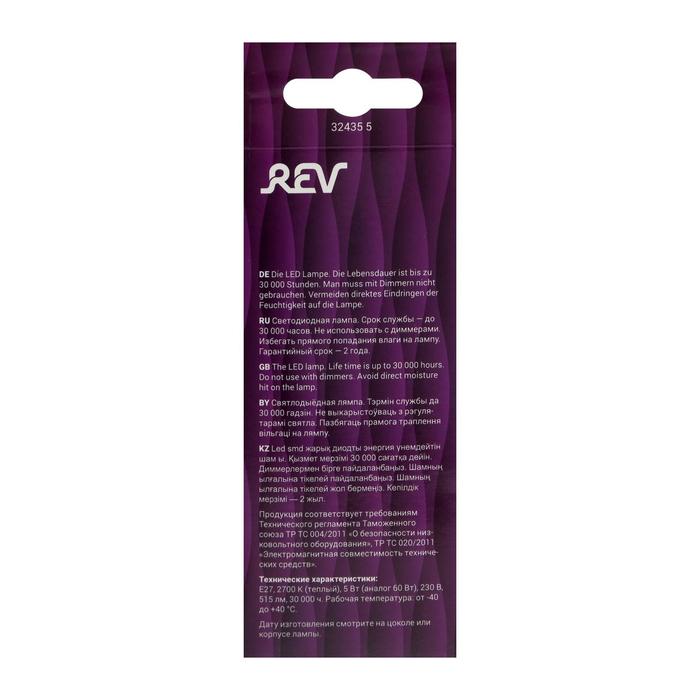 Филаментные светодиодные лампы REV сочетают в себе привычный внешний вид ламп накаливания и преимущества энергосберегающих светодиодных ламп, а также имеют более высокий КПД. Специальная стеклянная колба позволяет использовать филаментные лампы в открытых светильниках, хрустальных люстрах, торшерах и бра. Филаментные лампы REV обладают высокой стабильностью светового потока, отсутствие пульсации создает мягкое, комфортное и безопасное для глаз свечение, особая конструкция обеспечивает широкий угол рассеивания света до 360°.