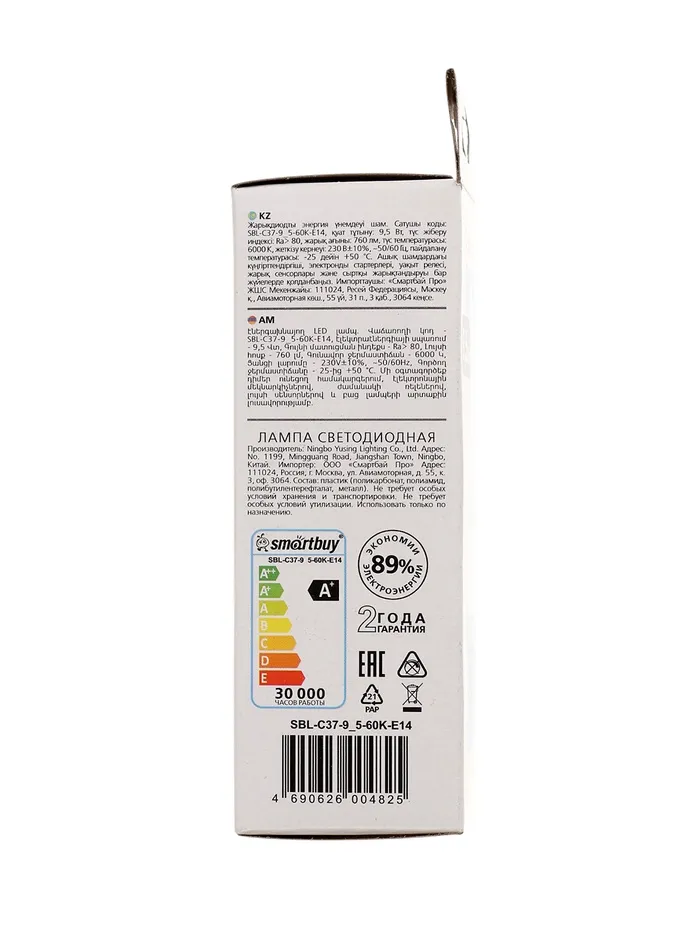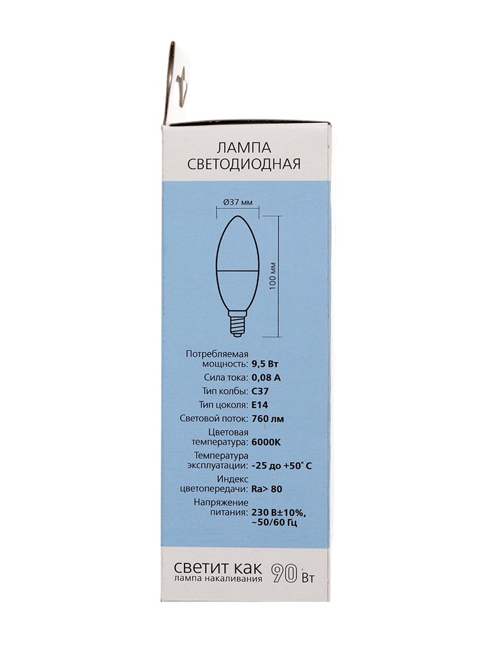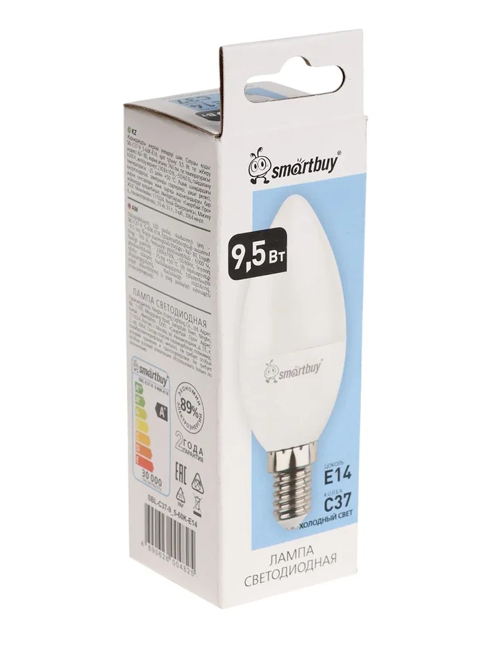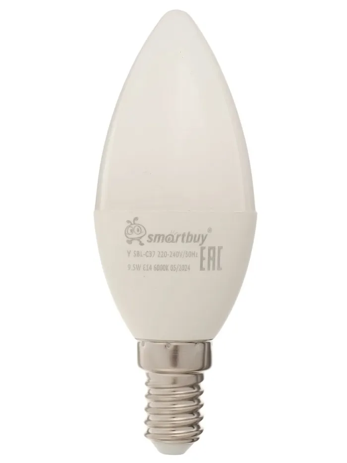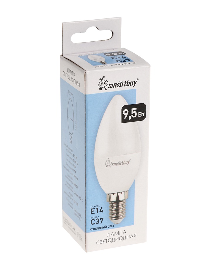 Лампа светодиодная Smartbuy, Е14, C37, 9.5 Вт, 6000 К, холодный белый свет — Характеристики