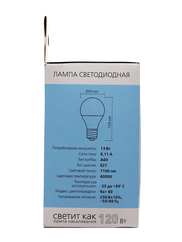 Лампа светодиодная Smartbuy, E27, A60, 13 Вт, 6000К, свечение холодное белое — Характеристики