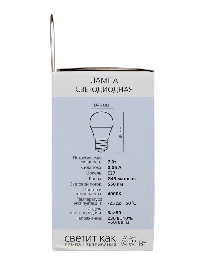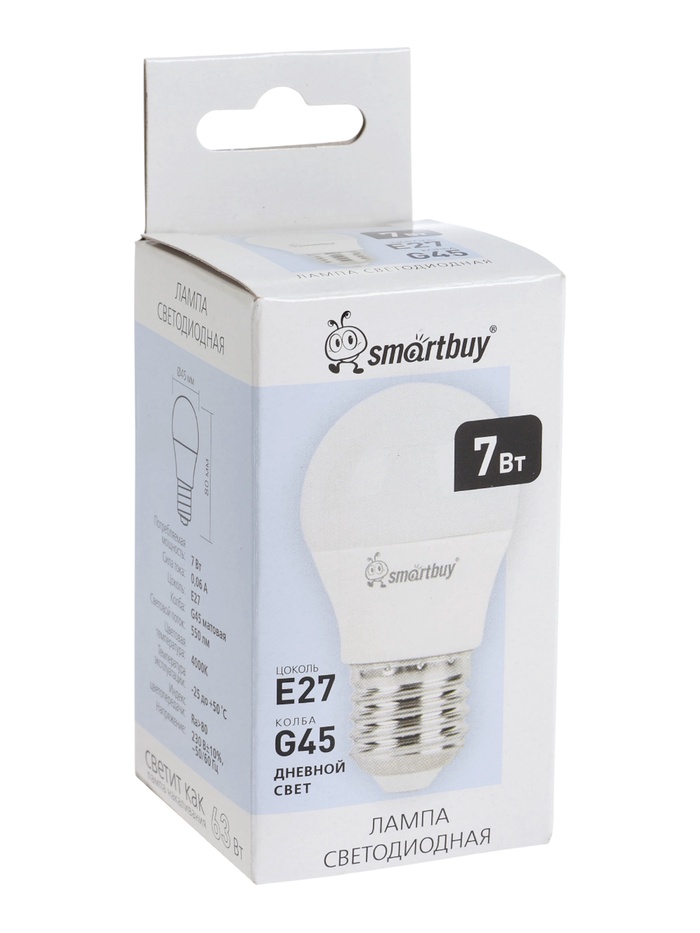 Лампа светодиодная Smartbuy, E27, G45, 7 Вт, 4000 К, дневной белый свет — Характеристики