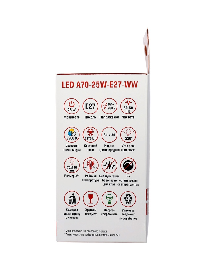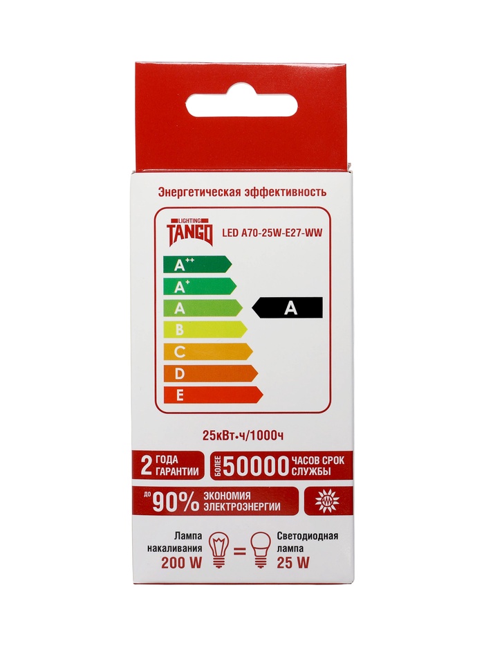 Лампа светодиодная TANGO, А70, 25 Вт, E27, 2375 лм, 6500K, IP20, свечение холодное белое — Характеристики