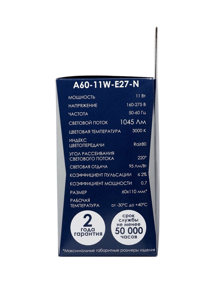 Лампа светодиодная Включай, А60, 11 Вт, E27, 1045 лм, 3000K, IP20, свечение тёплое белое — Характеристики