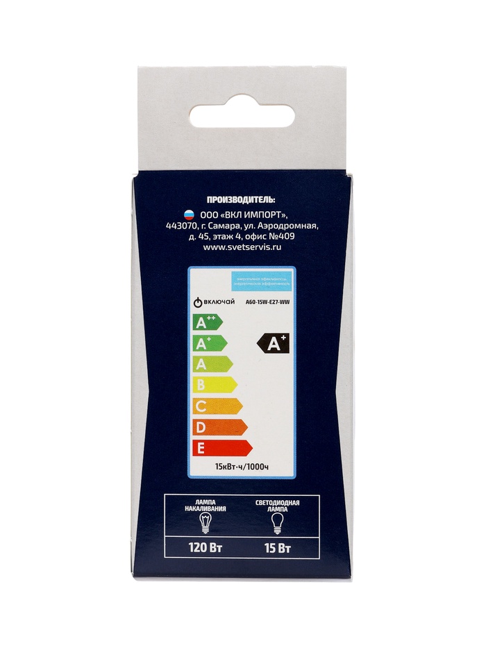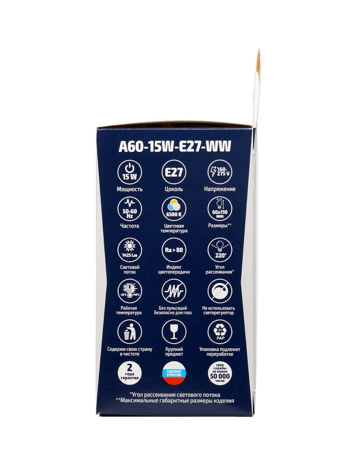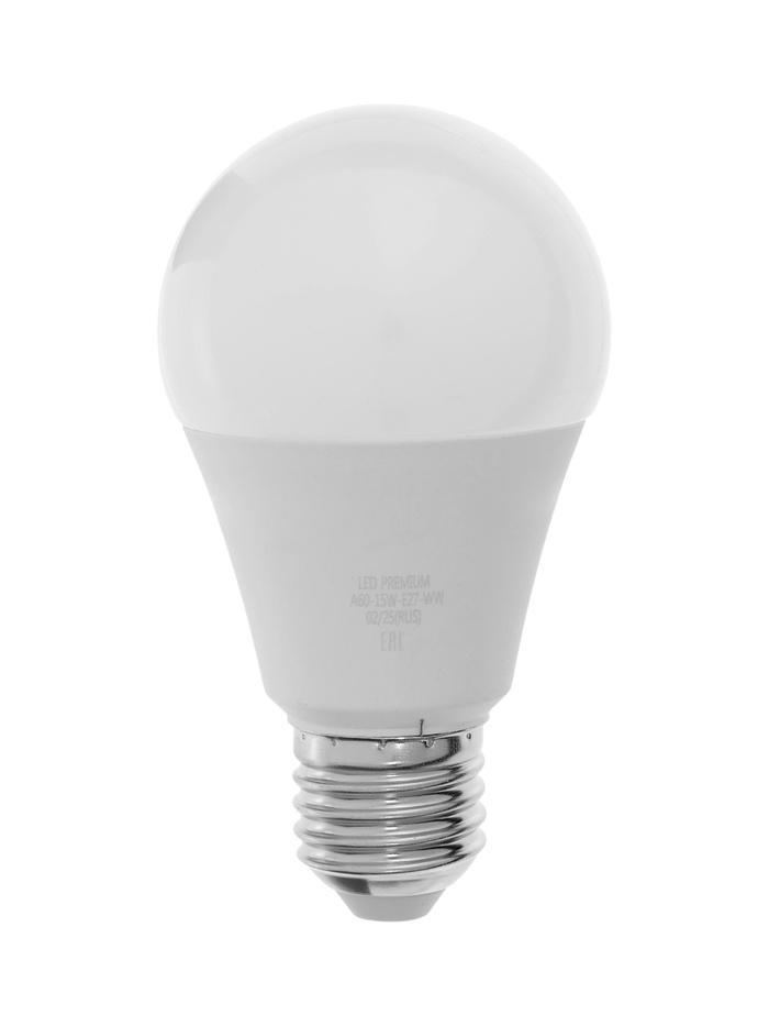 Лампа светодиодная Включай, А60, 15 Вт, E27, 1425 лм, 6500K, IP20, свечение холодное белое — Характеристики