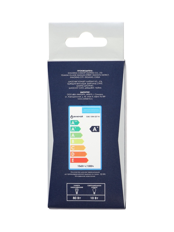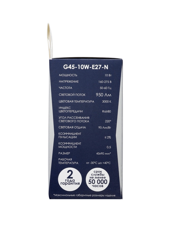 Лампа светодиодная Включай, G45, 10 Вт, E27, 950 лм, 3000K, IP20, свечение тёплое белое — Характеристики