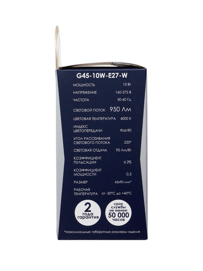 Лампа светодиодная Включай, G45, 10 Вт, E27, 950 лм, 4000K, IP20, свечение нейтральное белое — Характеристики