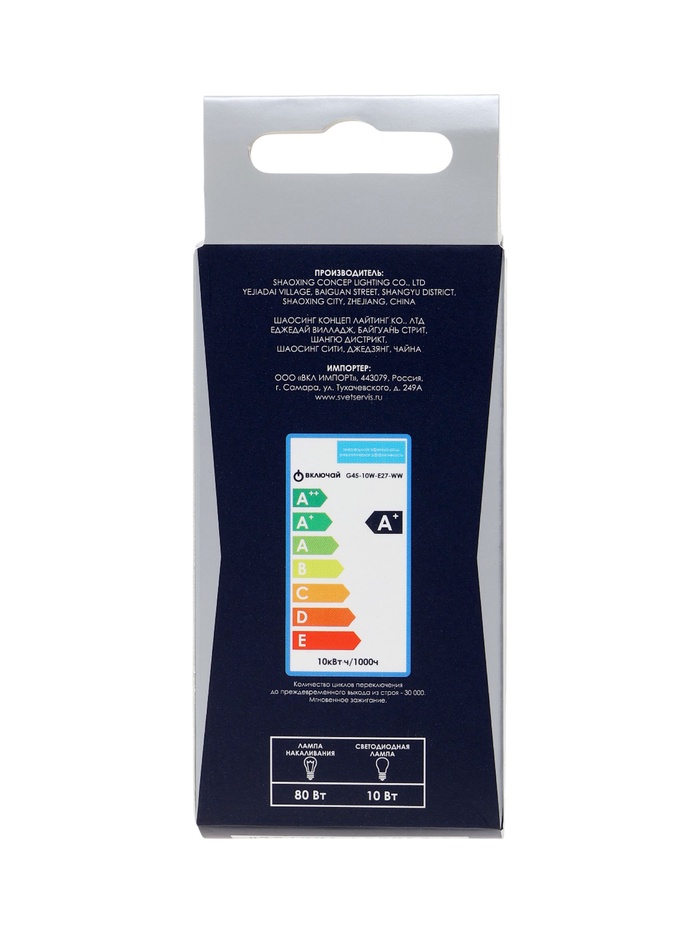 Лампа светодиодная Включай, G45, 10 Вт, E27, 950 лм, 6500K, IP20, свечение холодное белое — Характеристики