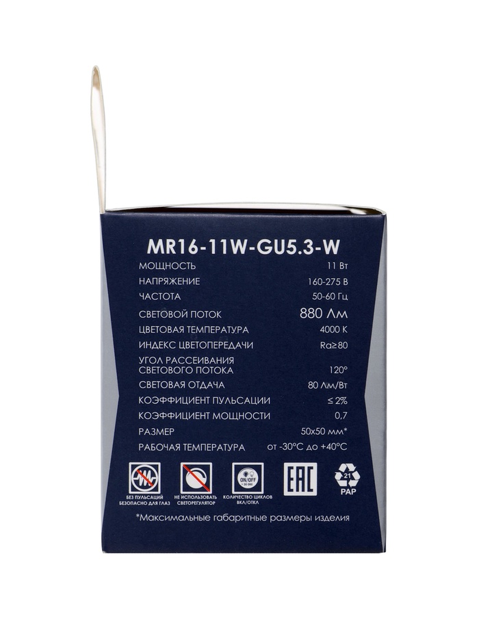 Лампа светодиодная Включай, MR16, 11 Вт, GU5.3, 880 лм, 4000K, IP20, свечение нейтральное белое — Характеристики