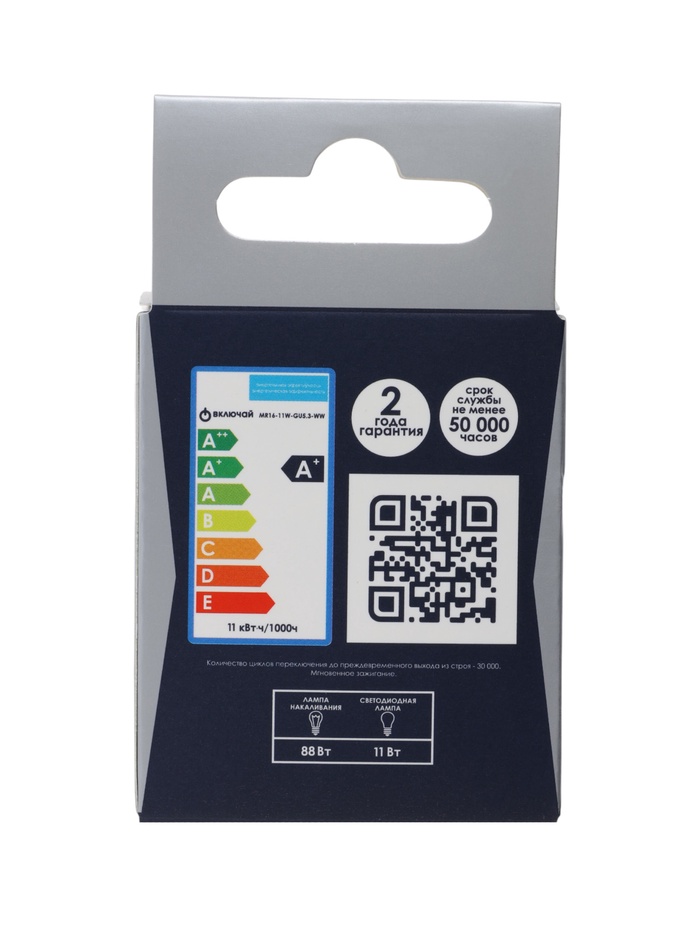 Лампа светодиодная Включай, MR16, 11 Вт, GU5.3, 880 лм, 6500K, IP20, свечение холодное белое — Характеристики
