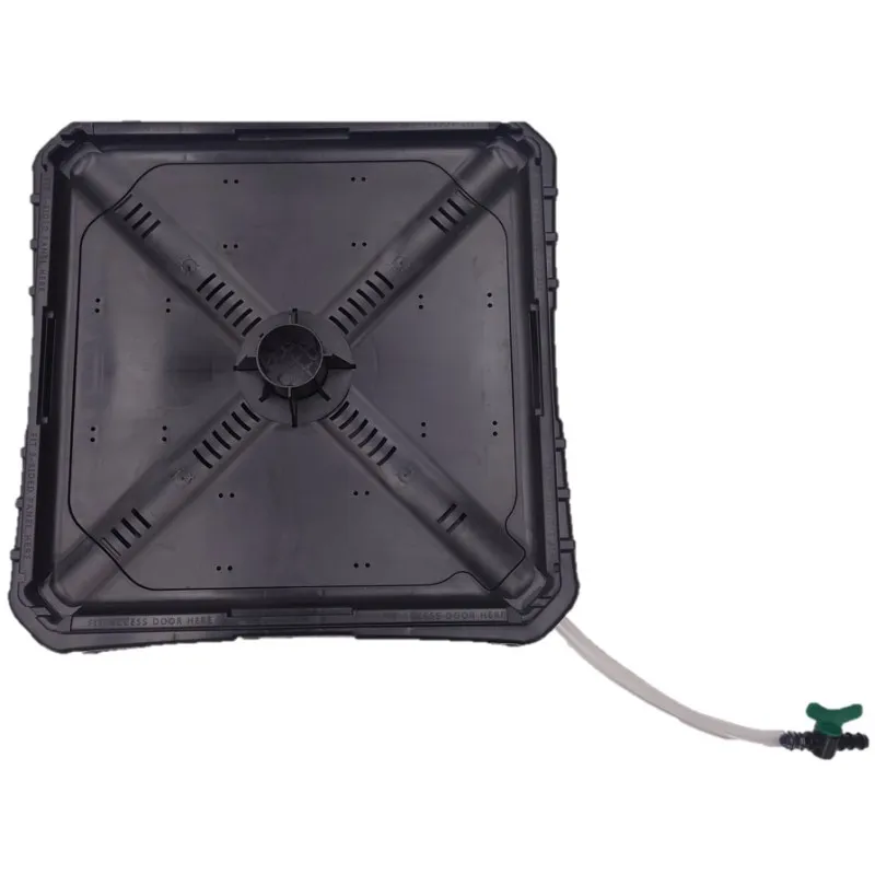 На дне компостера имеется резервуар для сбора жидкости (около 12 л), откуда лишняя влага легко выводится с помощью шланга и может использоваться как питательное удобрение. Aerobin утеплен и имеет полностью закрытую конструкцию, что позволяет сохранять тепло и ускорять процесс компостирования. Два люка для опорожнения и термометр облегчают использование компостера.