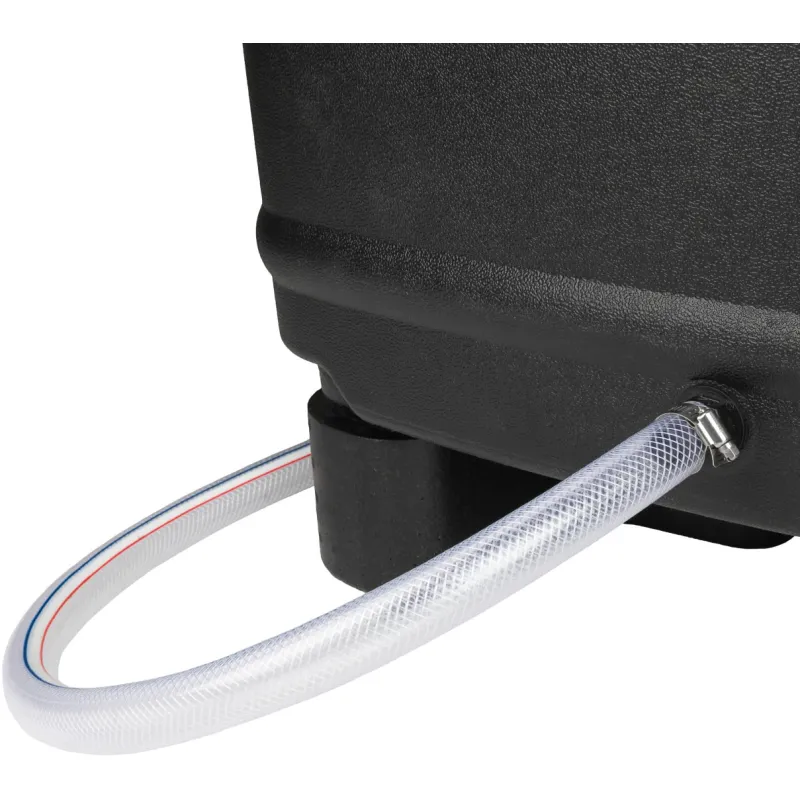 Жидкость, образующаяся в процессе компостирования, удаляется через шланг с краном, что позволяет легко использовать её в качестве удобрения для садовых растений.