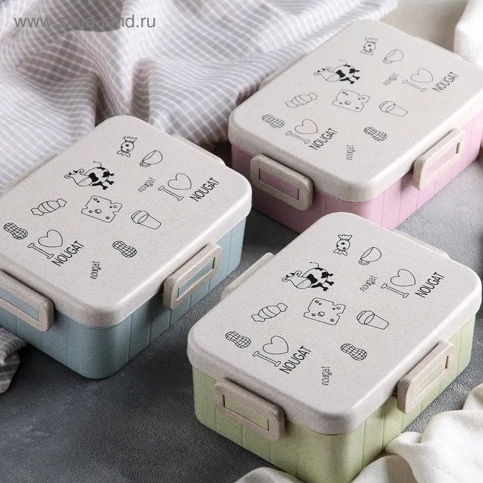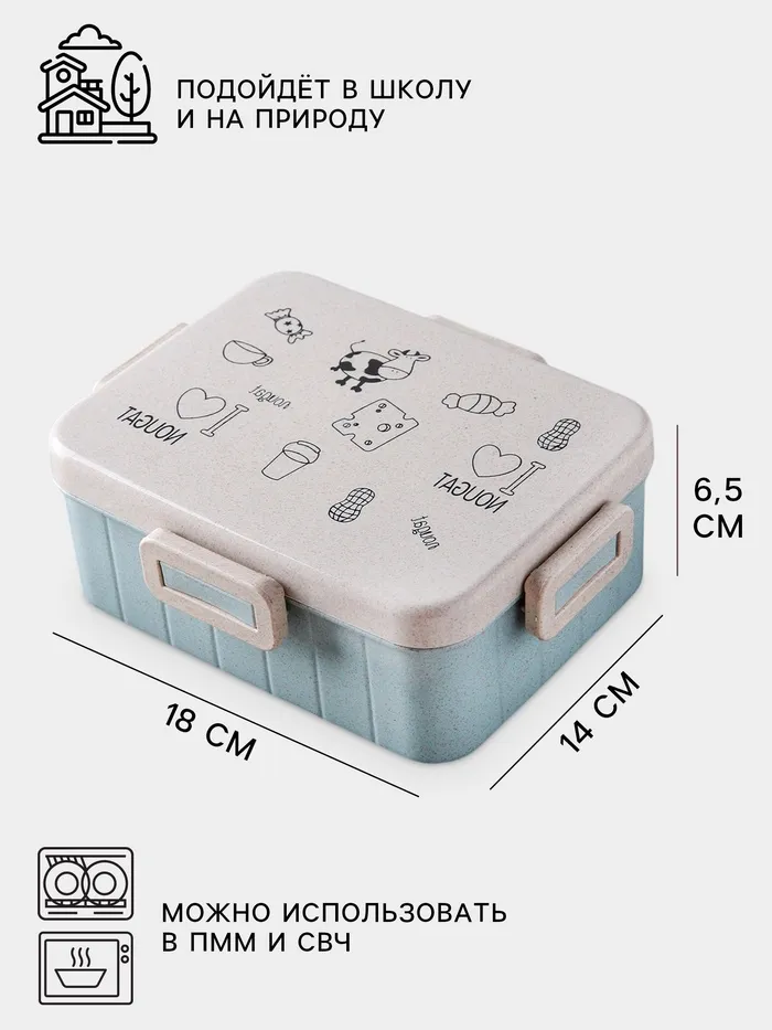 Ланч-бокс для еды с ложкой Доляна «Люблю вкусняшки», 1 л, в школу, 18×14×6.5 см, пшеничная солома, МИКС — Характеристики