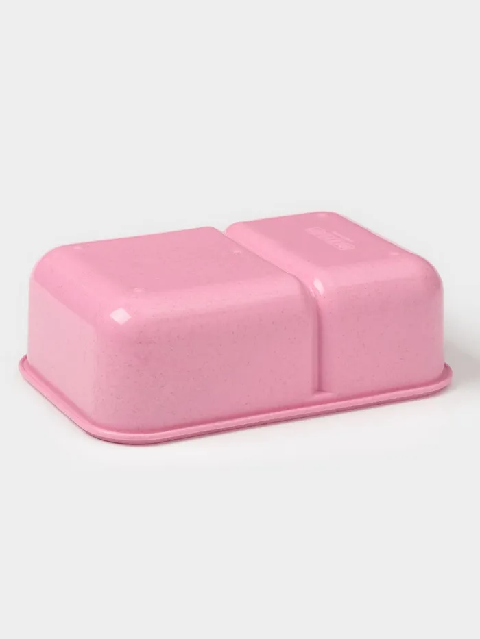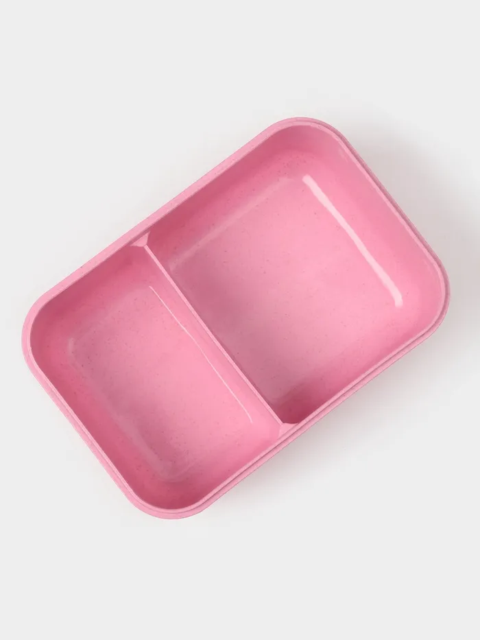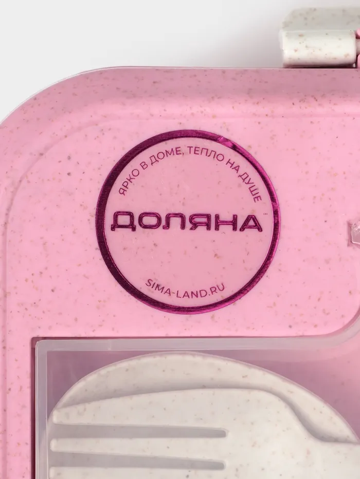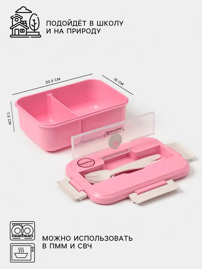Ланч-бокс для еды в школу Доляна «Фламинго», пластик, 20.5×15×7.5 см, 2 отделения, вилка, ложка, пшеничная солома, розовый — Характеристики