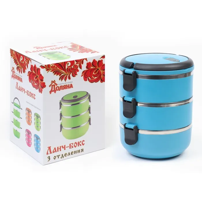 Ланч бокс Доляна, 1.5 л, 16×19 см, 3 уровня, нержавеющая сталь, голубой — Характеристики