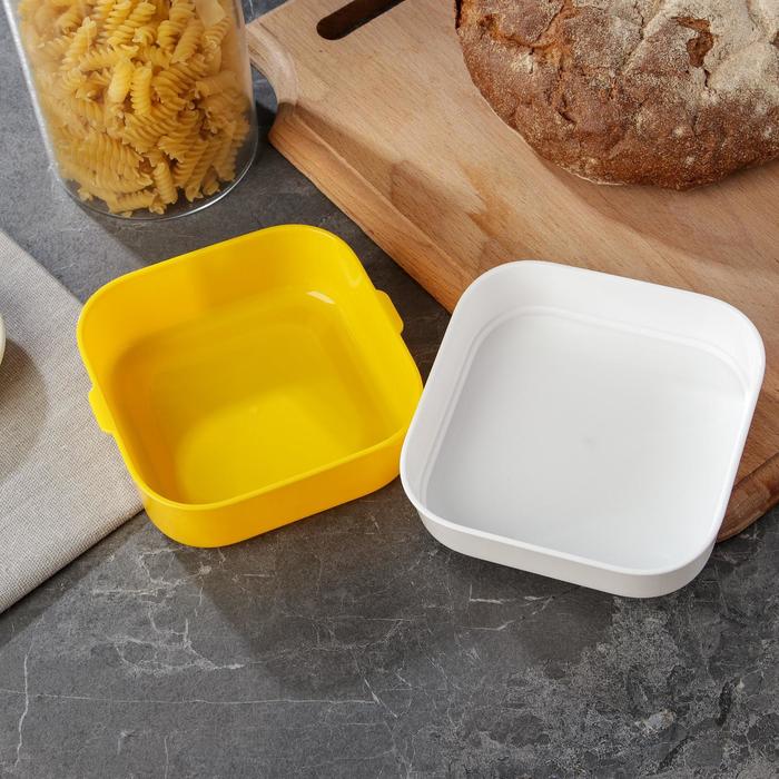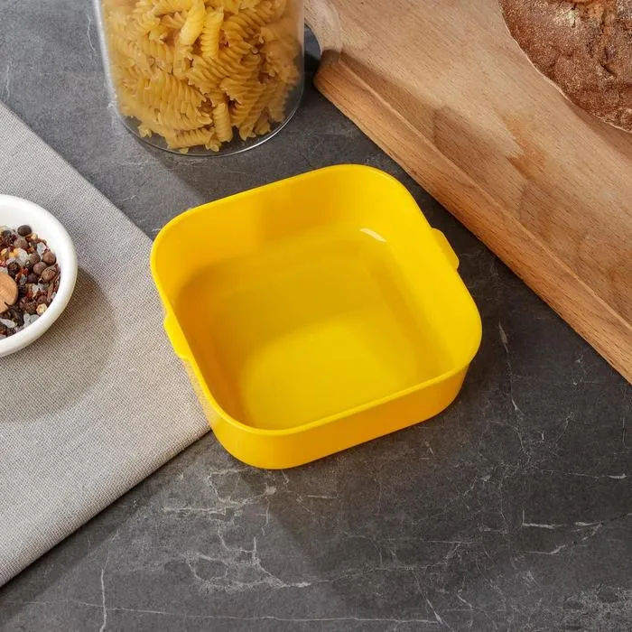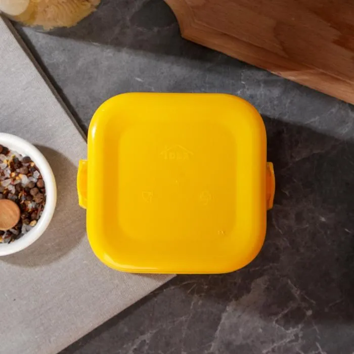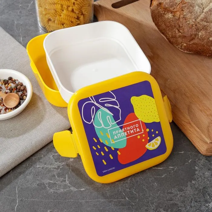 Герметичная крышка с защелками обеспечивает удобство использования и гарантирует сохранность пищи. Яркий желтый цвет ланч-бокса и интересный дизайн на крышке добавляют этому аксессуару стиля и яркости.