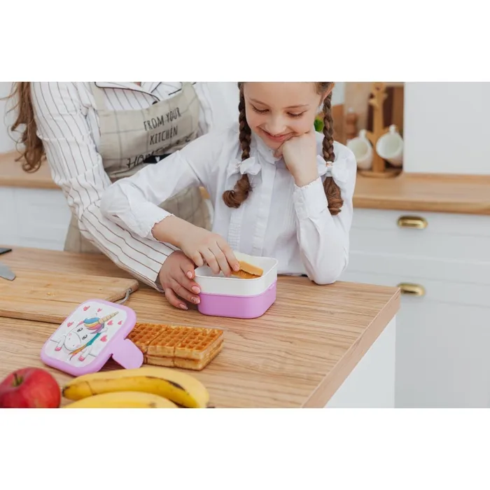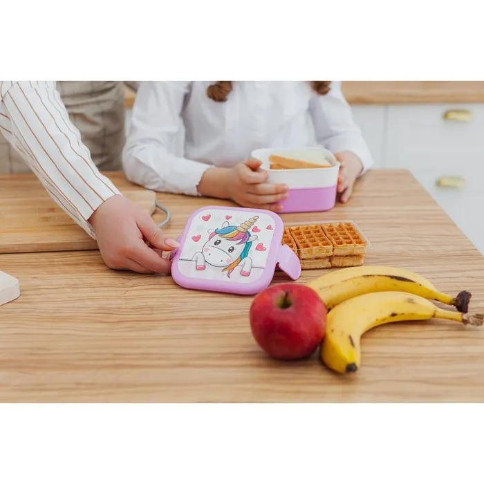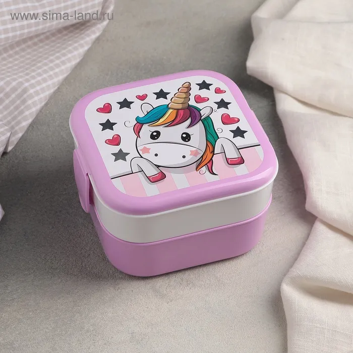 Ланч-бокс с двумя отделениями «Единорог» подойдет для того, чтобы брать с собой еду на работу или в школу. Также подойдёт для хранения еды в холодильнике. Благодаря двум отделениям еда не будет перемешиваться.