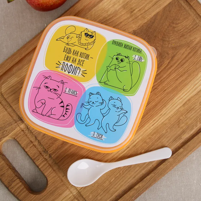 Герметичная крышка обеспечивает сохранность содержимого, а яркие цвета и красочный дизайн на крышке делают его выразительным и модным аксессуаром. В комплекте идет пластиковая ложка, что делает его еще более удобным в использовании.