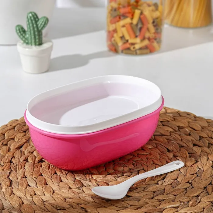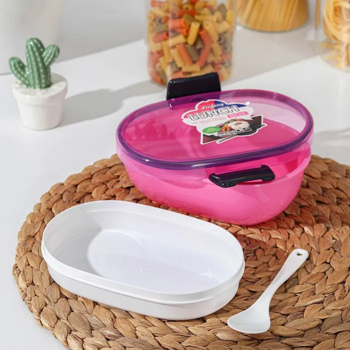 Ланч-бокс пластиковый 2 уровня «Простота», ложка, овальный, цвет МИКС — Характеристики