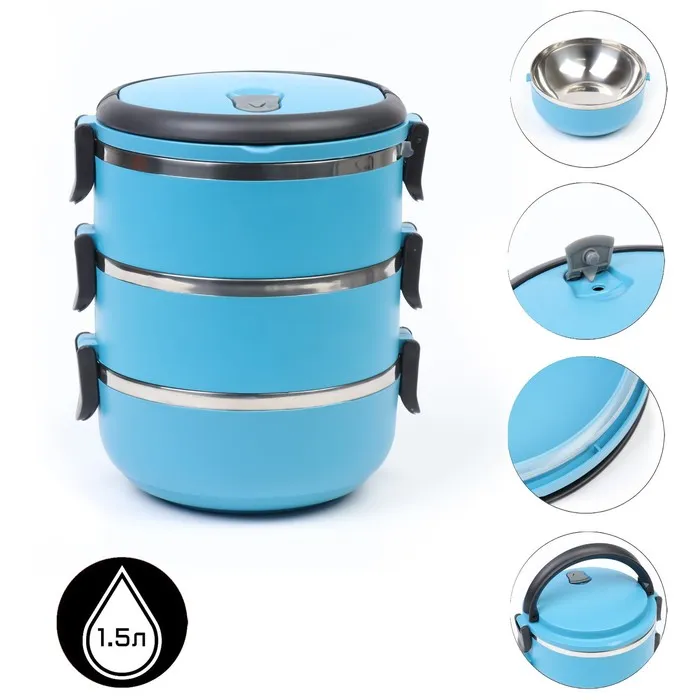 Ланч бокс TAKE IT EASY «Аланхе», 1.08 л, 2 уровня, нержавеющая сталь, синий — Характеристики