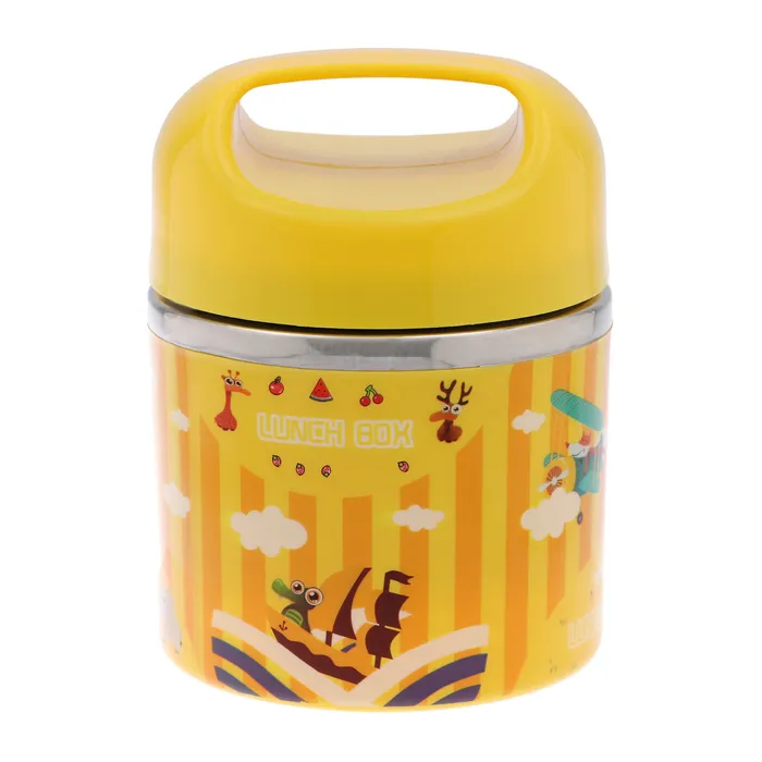 Ланч-бокс - это ручной контейнер для пищевых продуктов, используемый для транспортировки еды. Этот стильный и функциональный аксессуар станет незаменимым помощником в повседневной жизни. Среди разнообразия термопосуды ланч-бокс из металлической основы внутри - одна из популярных и универсальных моделей. Ланч-бокс из нержавеющей стали в пластиковом корпусе не содержит вредных веществ и безопасен для здоровья. Благодаря плотно закручивающейся крышке, контейнер надежно сохраняет свежесть и аромат ваших блюд, предотвращая протекание и рассыпание. Дизайн ланч-бокса "В мире зверей" выполнен в голубом цвете и украшен изображениями различных животных. Такой яркий и привлекательный дизайн обязательно понравится детям и сделает процесс приёма пищи более весёлым и интересным. Легкий и компактный размер 11 х 15 см, позволяет удобно разместить ланч-бокс в сумке или рюкзаке, не занимая много места, а яркий цвет добавит красок в ваш день. Отлично подходит для любых типов пищи, включая супы, вторые блюда, салаты и десерты. Обеспечивает надёжное сохранение температуры пищи в течение трех часов. Это позволит вам наслаждаться горячими блюдами даже спустя некоторое время после их приготовления, сохраняя их вкусовые качества и полезные свойства. Отличительной особенностью этого ланч-бокса является клапан на внутренней стороне крышки, который служит для выпуска пара, для более легкого открытия контейнера после нахождения в нем горячей пищи.