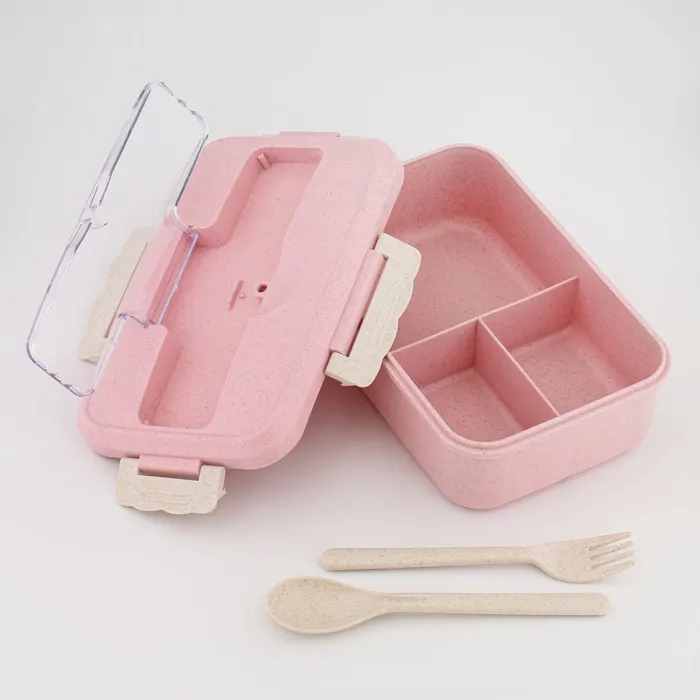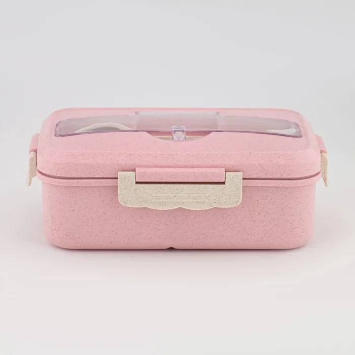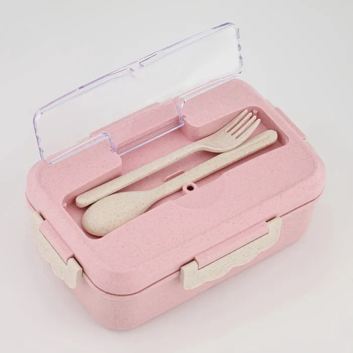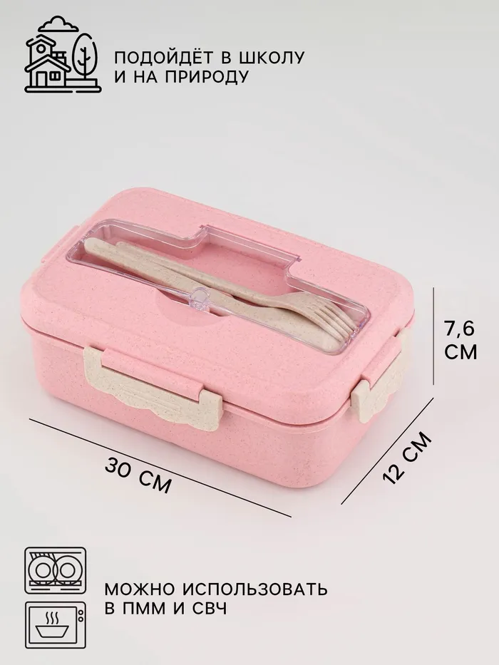 Ланч-бокс в школу TAKE IT EASY, 800 мл, с приборами, 12×7.6×20 см, пшеничная солома, розовый — Характеристики