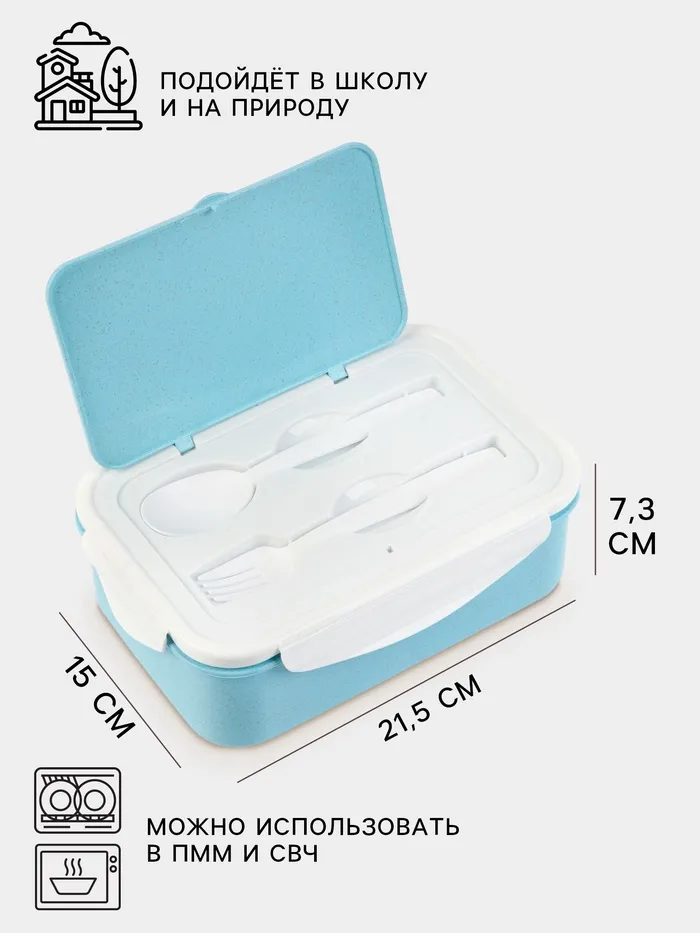 Этот ланч-бокс подходит для использования в школе, на прогулке или в поездке. Его можно брать с собой, чтобы всегда быть уверенным в свежести и удобстве приёма пищи. С ним ваш обед станет ещё приятнее!