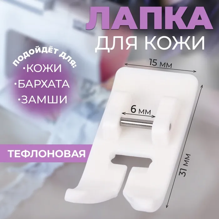 Лапка свободно проходит по ткани без дополнительного трения. Используется для работы с кожей, винилом, тканями со скользящим покрытием, синтетическими кожзаменителями, плащёвыми тканями.