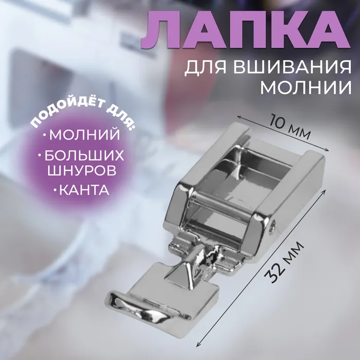 Лапка для швейных машин, для вшивания молнии, 3.2×1 см — Характеристики