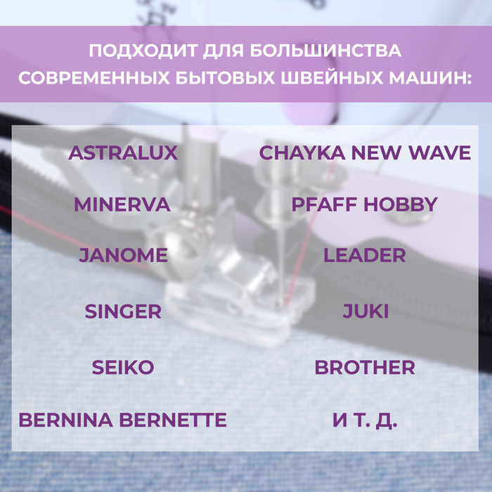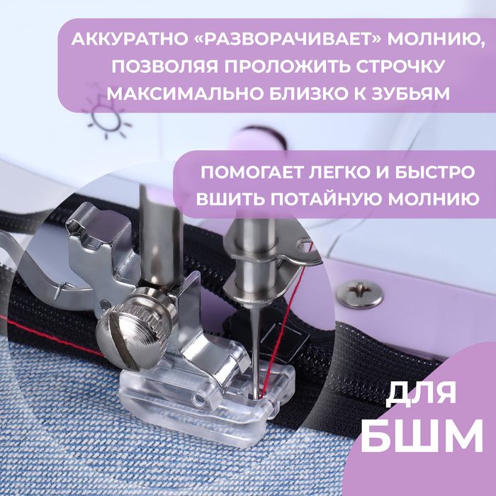Лапка для швейных машин, для вшивания потайной молнии, 2.1×1.5 см — Характеристики