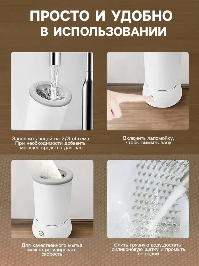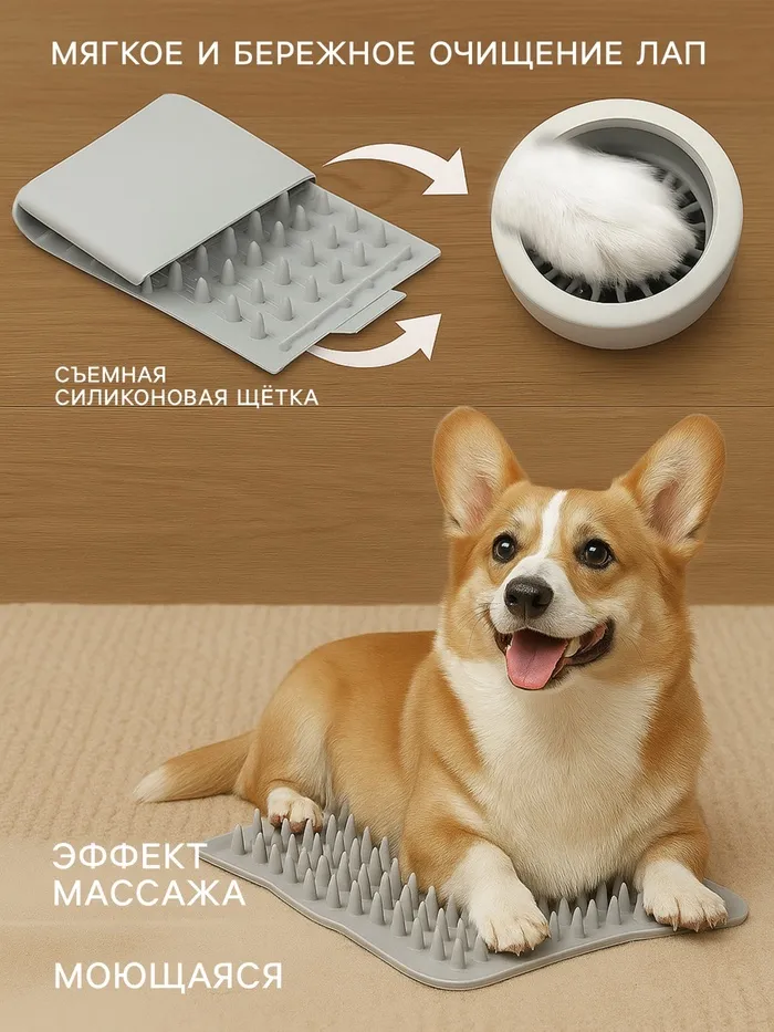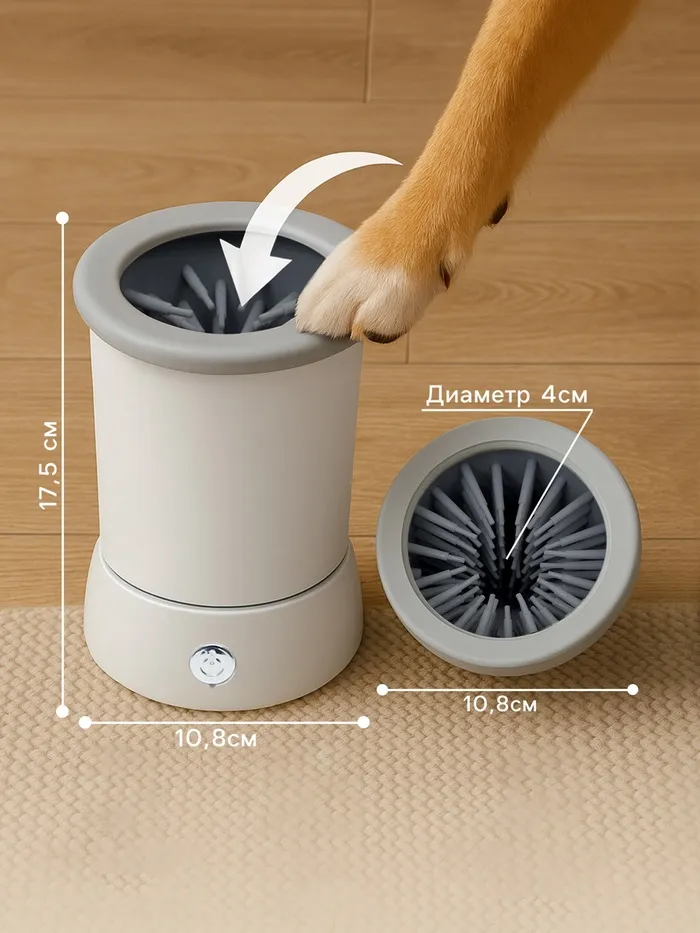 Эта лапомойка — идеальное решение для тех, кто ценит чистоту и комфорт своих питомцев. С ней уход за лапами ваших собак и кошек станет простым и приятным процессом, оставляя больше времени для радостных моментов вместе.