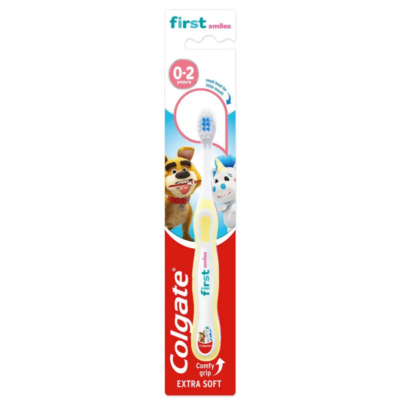 Детская зубная щетка Colgate First Smiles для детей от 0 до 2 лет с экстра мягкой щетиной. Щетка имеет очень мягкую, маленькую головку, идеально подходящую для детского ротика. Удобная ручка с эргономичным дизайном обеспечивает надежный захват для маленьких ручек, когда ребенок готов самостоятельно начинать чистить зубы.
