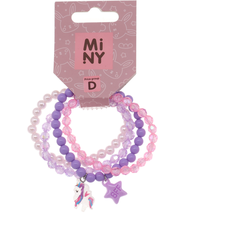 Этот легкий и изящный набор браслетов Miny станет отличным подарком для любого ребенка. Он не только украсит запястье, но и поможет выразить индивидуальность вашего малыша.