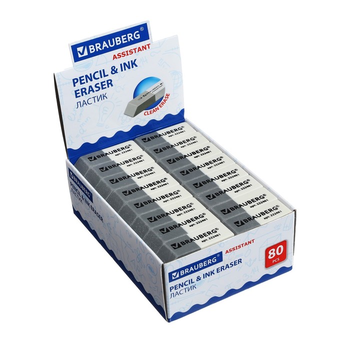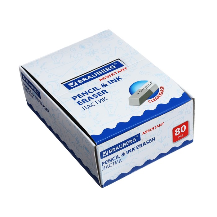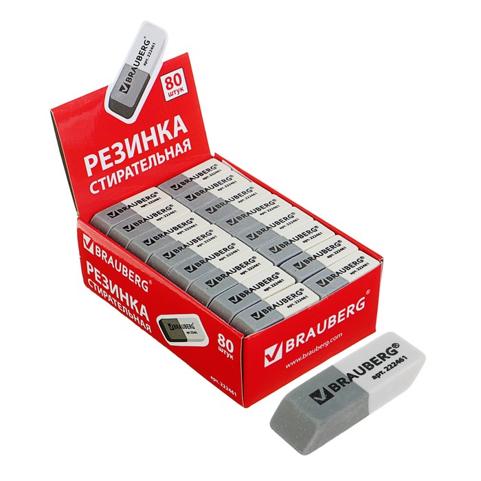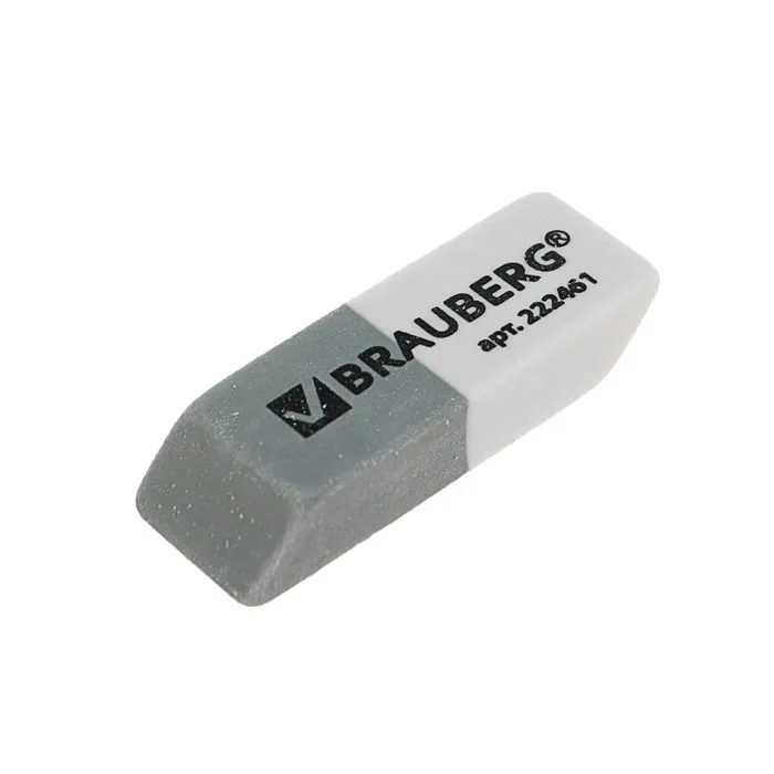 Ластик BRAUBERG предназначен для удаления надписей, сделанных чернографитными карандашами. Имеет прямоугольную форму со скошенными углами, позволяющими стирать даже тонкие линии. Цвет - серо-белый. Размер - 41х14х8 мм. Поставляется в картонном дисплее.