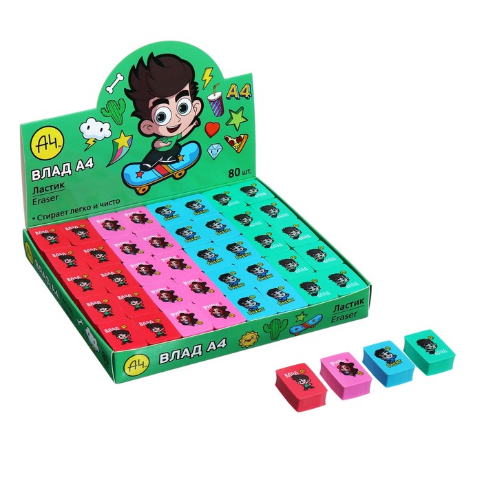 Ластик дизайн «Влад А4», 28 х 18 х 9 мм, МИКС — Характеристики
