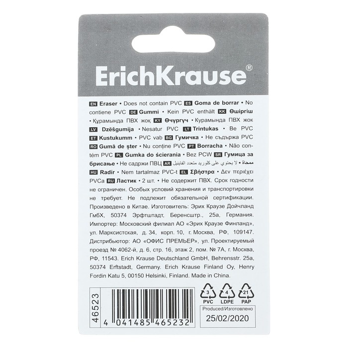 Ластик ErichKrause Joy Rainbow, 2 штуки, блистер — Характеристики