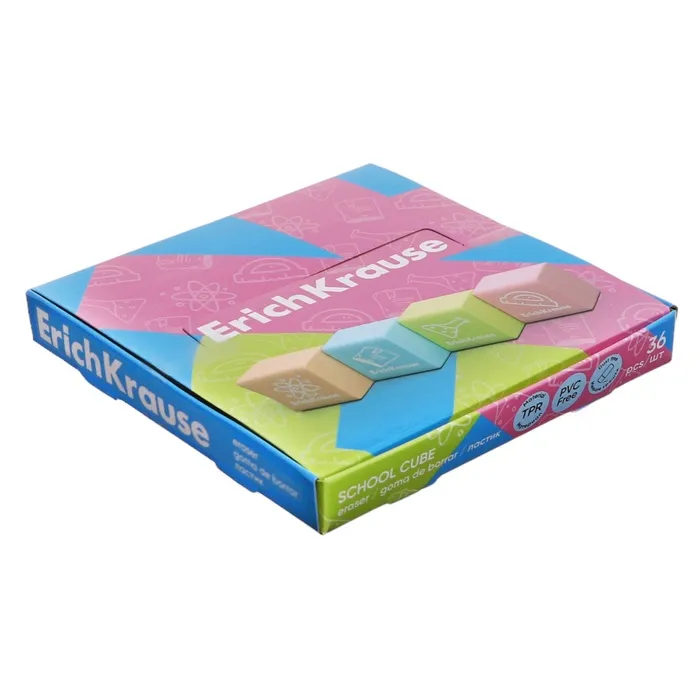 Ластик ErichKrause "School cube", 22 х 22 х 17 мм, синтетика, микс — Характеристики
