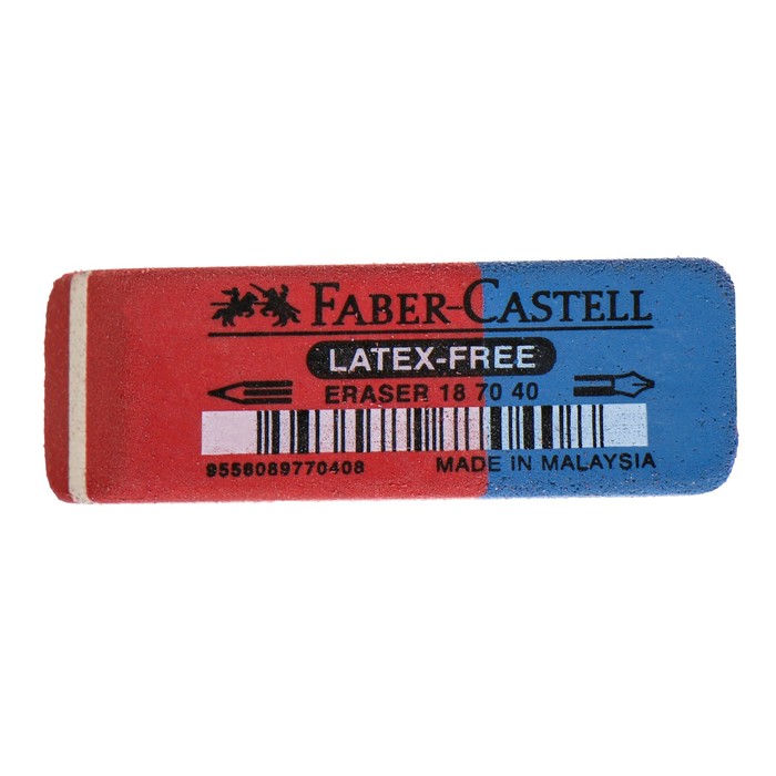 Ластик Faber-Castell каучук 7070, 50 х 18 х 8, двухсторонний для карандашей и чернил, красно-синий — Характеристики