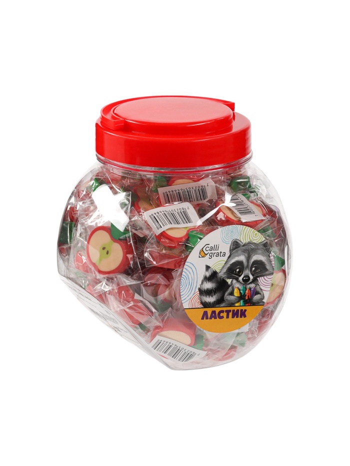 Ластик фигурный «Яблоко в пакете», штрихкод на штуке — Характеристики