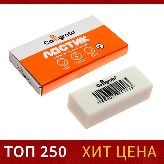 Ластик прямоугольный белый синтетика 31 х 13 х 9 мм (штрихкод на штуке)