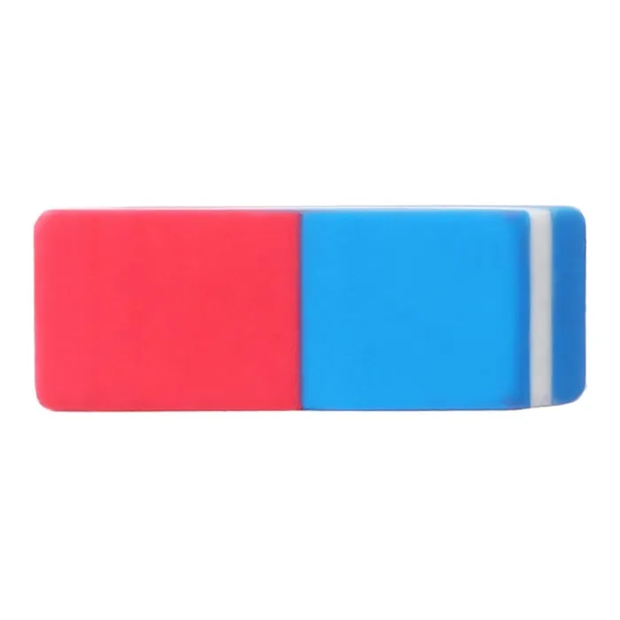 Ластик комбинированный красно-синий скошенный малый 39 х 15 х 6 мм (штрихкод на штуке) — Характеристики