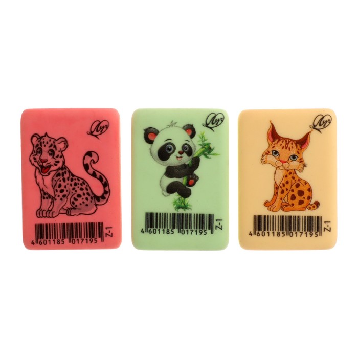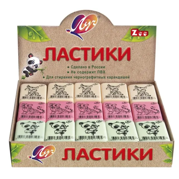 Ластик Луч "ZOO" Z1, термопластичная резина (35 х 25 х 8 мм) пастельный, МИКС — Характеристики