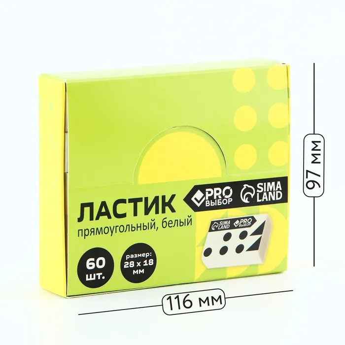 Ластик прямоугольный, 28×18×8 мм, PROвыбор — Характеристики
