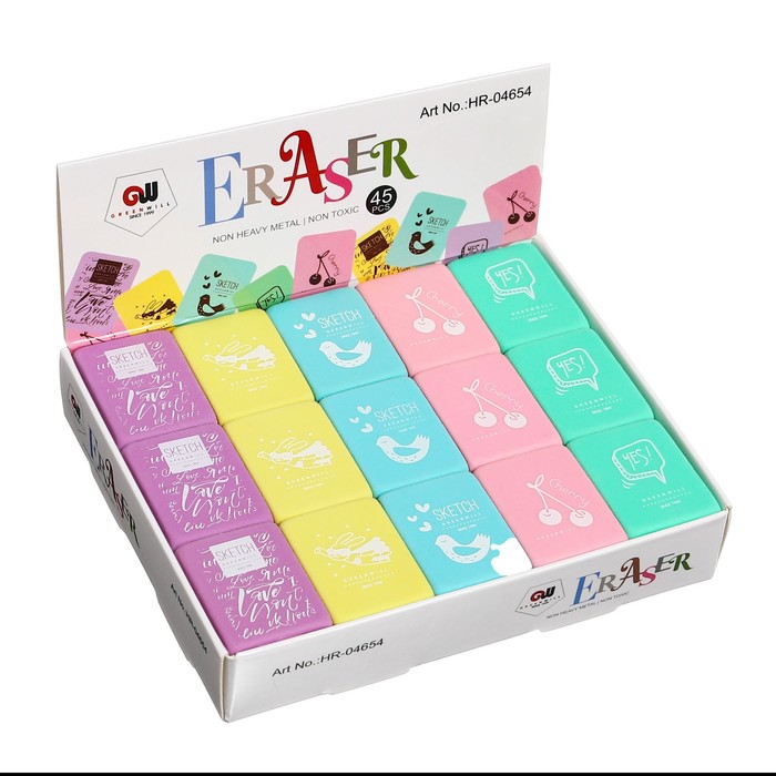 Высококачественный ластик изготовлен из натурального каучука.Имеет прямоугольную форму.Поставляется в картонной коробке.Ластик обеспечит лёгкое и чистое стирание без повреждения поверхности бумаги и без образования бумажной пыли.