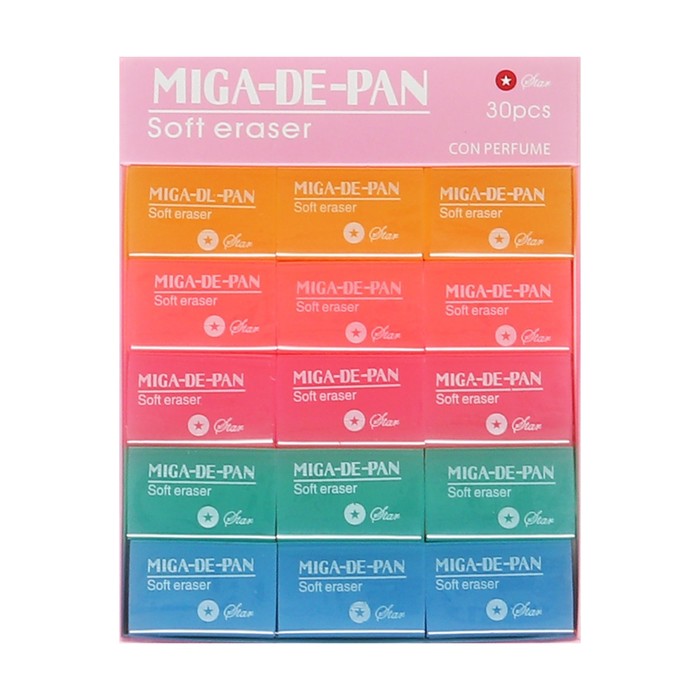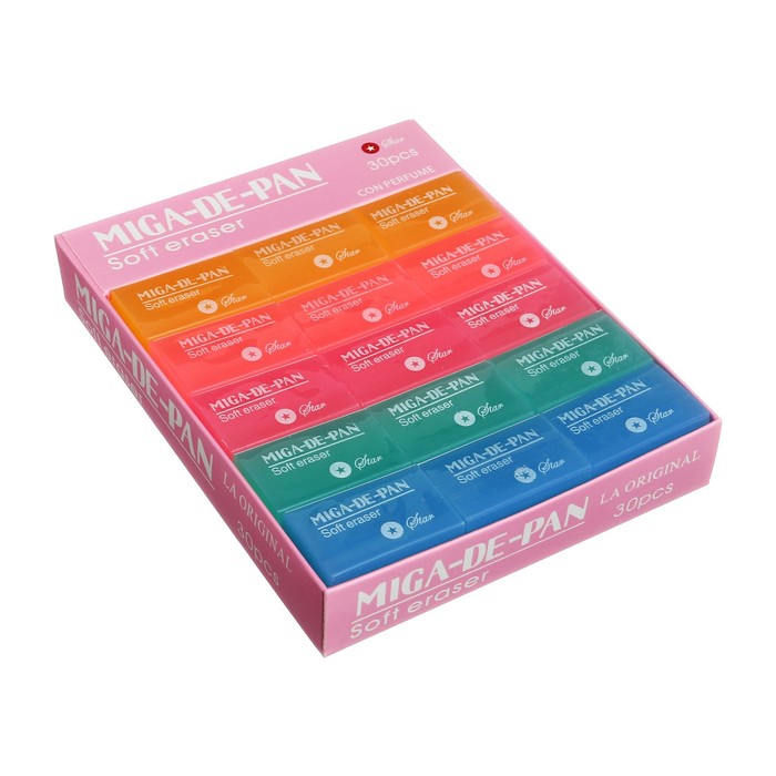 Ластик прямоугольный "Неон" в бумажном держателе, МИКС — Характеристики
