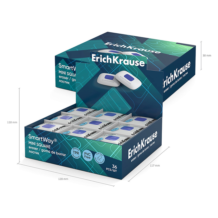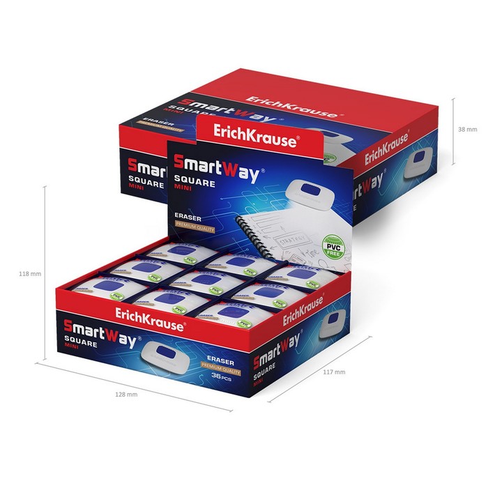 Ластик с держателем ErichKrause «ErichKrause SmartWay Mini Square», средней жёсткости, гипоаллергенный, в пакете с европодвесом — Характеристики