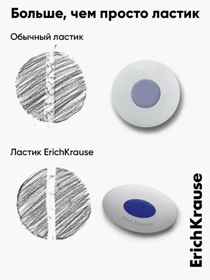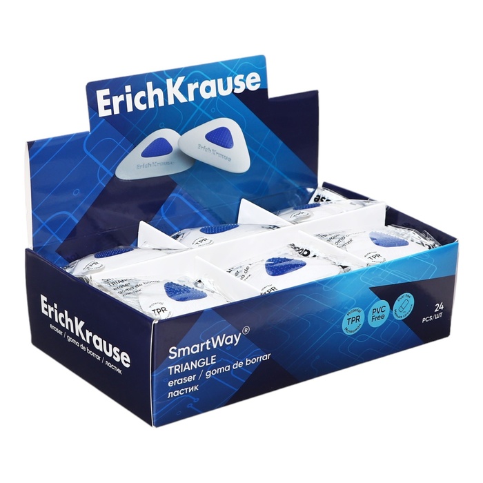 Ластик с держателем ErichKrause "SmartWay Triangle", треугольный, средней жёсткости, гипоаллергенный, в пакете с европодвесом — Характеристики