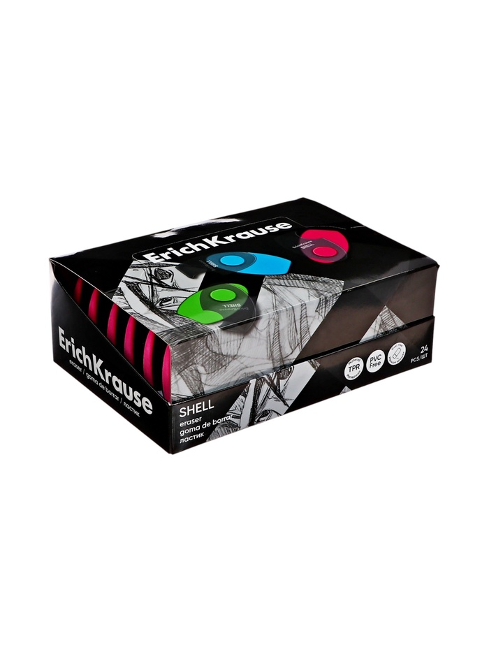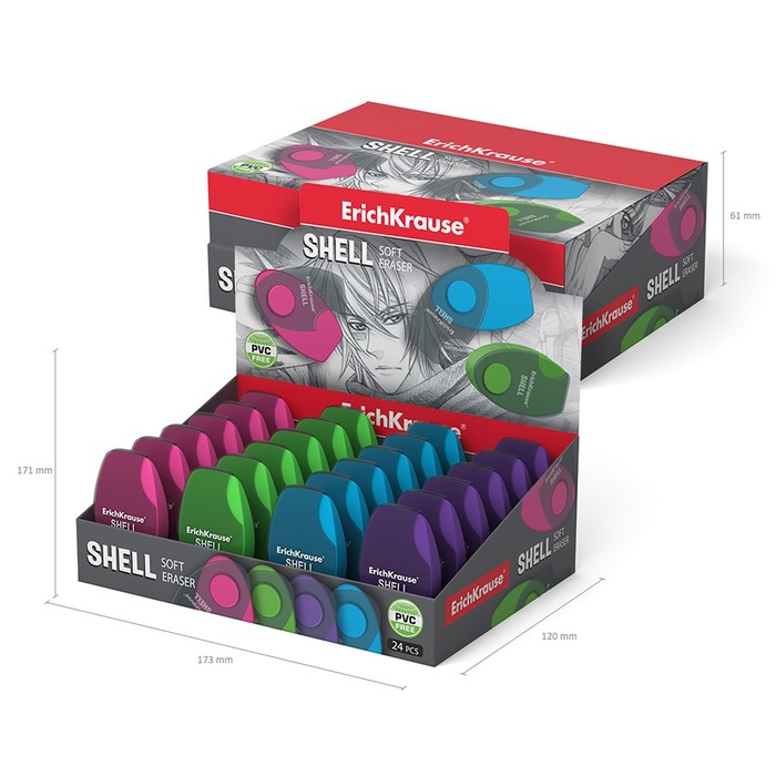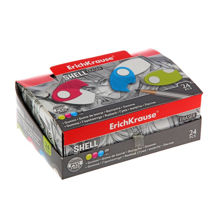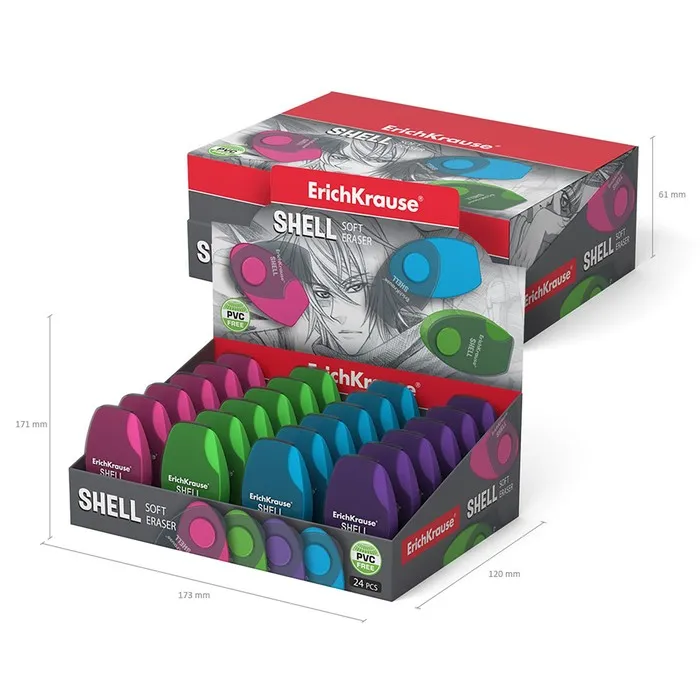 Ластик в пластиковом футляре ErichKrause Shell, мягкий, гипоаллергенный, МИКС — Характеристики