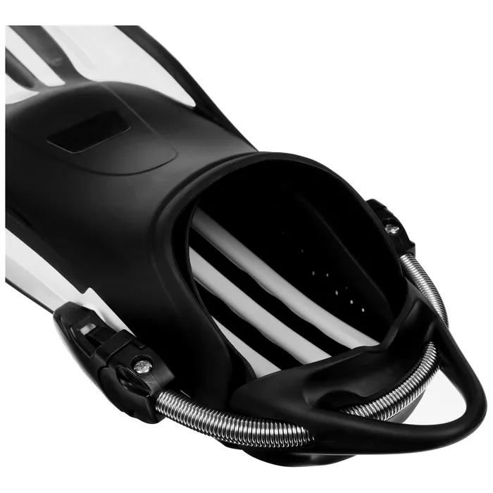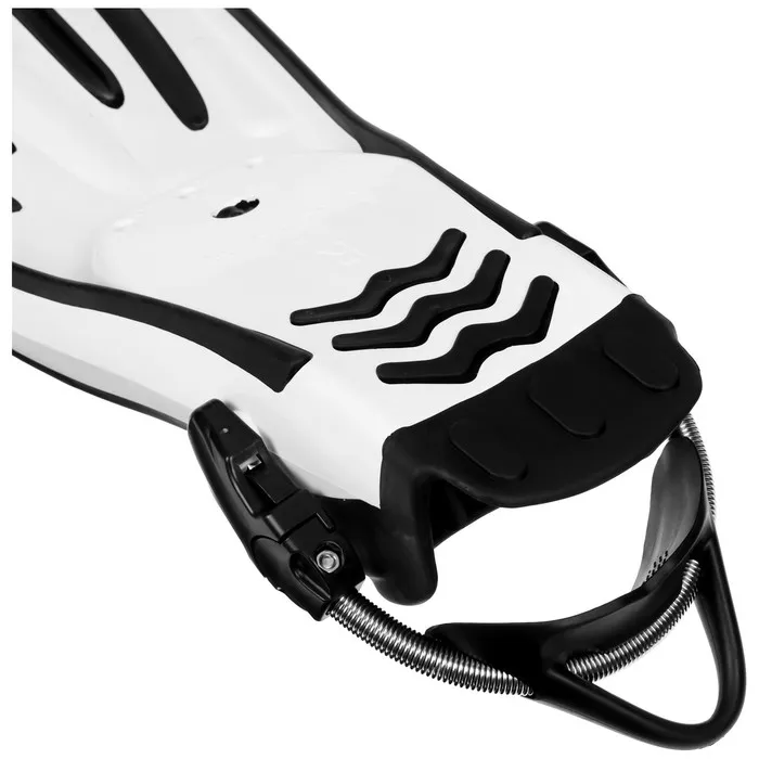 За счёт регулируемой пружины и противоскользящего покрытия на пятке ласта надёжно фиксируется на ноге.