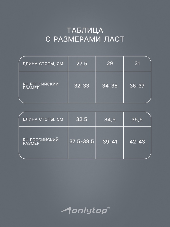 Ласты для плавания ONLYTOP – отличный выбор для начинающих и продвинутых пловцов, которым важны удобство, скорость и точность движений в воде. Погружайтесь в мир плавания с комфортом и эффективностью!