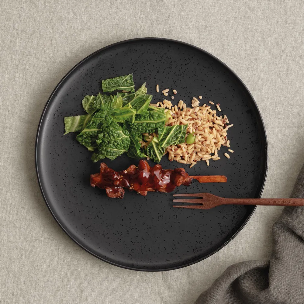 В японском языке слово 'kuro' означает черный – это классический цвет, создающий элегантный вид для этой серии. Минималистичные формы оживляются блестящей, пятнистой глазурью. Все изделия этой коллекции изготовлены из первоклассного фарфора, что делает их исключительно прочными и идеально подходящими как для повседневного использования, так и для профессионального кейтеринга. В результате процесса обжига каждая тарелка имеет уникальный узор.