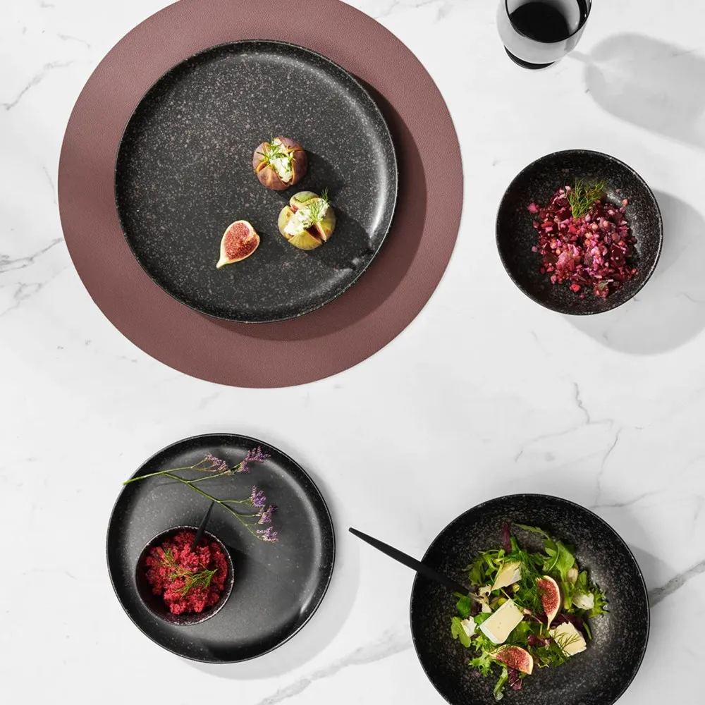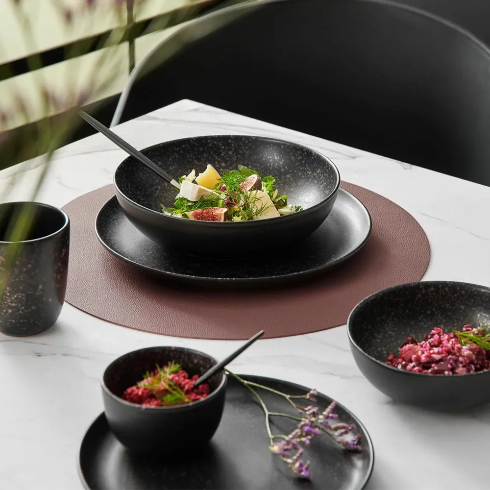 Коллекция "Saisons", изготовленная вручную из каменной керамики в небольшой семейной компании в Португалии. Каждое изделие покрыто темной глазурью, оттенок которой напоминает сочные ежевики. Ручная роспись светлыми точками придает этим великолепным изделиям живость, а каждый обжиг создает уникальный результат, придавая серии ее самобытный вид.